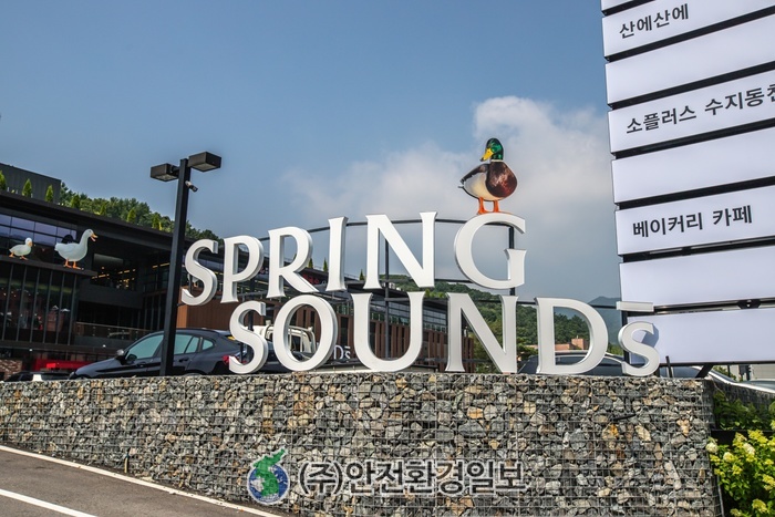 실내외 넓은 공간에 아낌없이 투자한 인테리어와 산과 개울을 바로 인접한 위치 덕에 자연과 하나됨을 느낄 수 있는 힐링베이커리카페로 많은 사랑을 받을 것으로 예상한다. 10m 길이의 시원한 느낌의 카운터 데스크와 안락함을 추구하는 다양한 좌석, 구역마다 느낌이 다른 개방감있는 인테리어가 눈길을 끈다. 심곡천 개울가에서 오리가 노는 장면을 보는 것은 스프링사운즈의 방문의 하이라이트이다. 외부에도 다양한 좌석이 마련되어 있고 외부 산책로도 조성되어 있다.